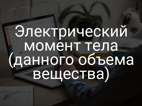 Электрический момент тела (данного объема вещества) - векторная величина, равная геометрической сумме электрических моментов всех электрический диполей, входящих в состав данного тела (данного объема вещества)