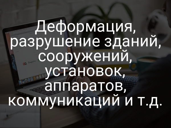 Деформация, разрушение зданий, сооружений, установок, аппаратов, коммуникаций и т.д.